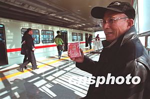 北京地鐵八通線為東部遠郊區的通州居民進城帶來了極大的方便,一位家住通州管莊的老先生憑自己的離休老人證可以免費搭乘快捷的輕軌列車。作者:張雷