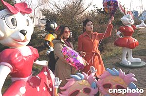 元旦、春節即將來臨,北京石景山游樂園近期增設了卡通樂園,許多形象逼真可愛的卡通將成為小朋友的新愛。中新社記者:任海霞