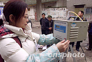 川東北氣礦“一二·二三”井噴特大事故封壓工作獲得成功后,工作人員立即進(jìn)入受災(zāi)核心區(qū),清理現(xiàn)場(chǎng)的動(dòng)物尸體,進(jìn)行登記和銷(xiāo)毀工作。另外,由于核心區(qū)內(nèi)的空氣及水源水質(zhì)也受到不同程度的污染,環(huán)保部門(mén)也在進(jìn)行水質(zhì)和大氣監(jiān)測(cè)。圖為環(huán)保工作人員正在對(duì)井噴事故發(fā)生地的空氣進(jìn)行檢測(cè)。作者:周舸