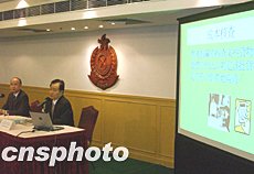 香港海關十二月二十九日就《內地與香港關于建立更緊密經貿關系的安排》(CEPA)即將實施舉行記者會,署理海關關長黃秀培(左一)、海關貿易管制處處長黃清蔚向傳媒簡介CEPA的實施準備情況。作者:錢興強