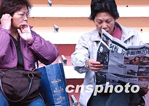 香港百變天后梅艷芳因病于十二月三十日零晨兩點五十分在香港逝世。圖為香港市民清晨閱讀有關梅艷芳病逝消息。中新社記者:錢興強