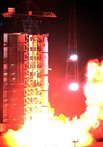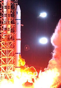 12月30日凌晨3時06分,長征二號丙改火箭拖著耀眼的尾焰刺破夜空,十多分鐘后,探測一號衛星被送入預定軌道。至此,2003中國航天年圓滿地劃上了句號。2003年,中國成功發射了六顆衛星和一艘載人飛船。中新社記者:張煒
