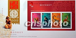 一月四日,香港郵政發(fā)行新一套農(nóng)歷新年“歲次甲申(猴年)”特別郵票。圖為其首日封。作者:潘索菲