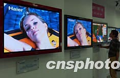 2004年初,中國市場上等離子彩電價格大幅跳水,一款海爾四十六英寸等離子彩電價格已降至三萬元人民幣以下。2003年中國市場等離子彩電的銷售量增長五成以上,業界預測兩萬元人民幣以內的等離子彩電即將上市。中新社記者:張煒