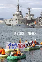日本民間組織舉行海上游行 反對自衛(wèi)隊派伊(圖)