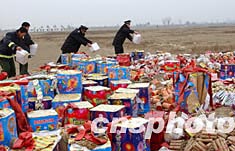 一月十四日,北京警方再次將依法收繳的2203萬余件、銷售價值達144萬元人民幣的非法、偽劣、超標(biāo)的煙花爆竹進行集中銷毀,以表示警方打擊非法私運、販運、銷售煙花爆竹的決心不變。作者:李連杰