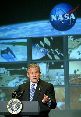 白宮官員曾表示,布什總統(tǒng)做出的宣布將重振美國探索太空的事業(yè)。去年早些時候哥倫比亞號航天飛機返回地球時爆炸,機上宇航員全部遇難。但是,不久之前,美國國家航空航天局的探測器卻成功降落火星。