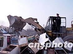春節前夕,北京警方將收繳的4000余臺賭博機集中銷毀。作者:韓金星