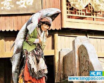 據香港成報報道,楊千嬅在《花》片中飾演一名賣魚女,其中一場戲,講述她背起一條近百磅的巨魚,誰知卻連人帶魚滾落樓梯,并壓在任賢齊身上的場面,非常搞笑。