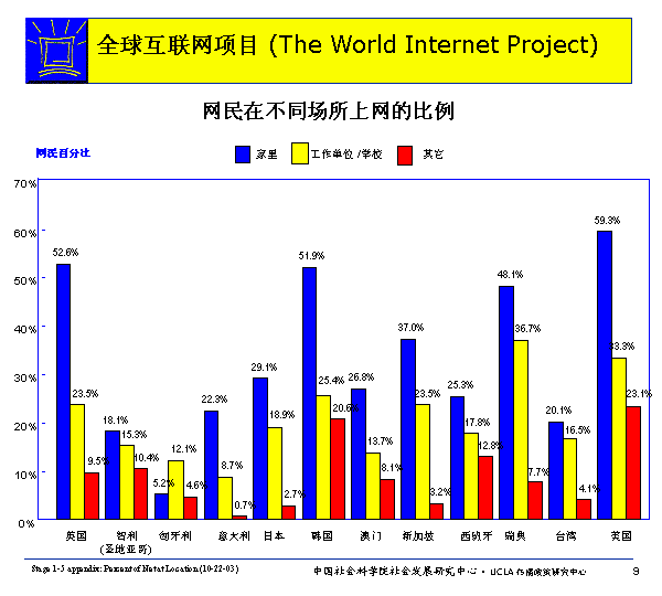 各國用網(wǎng)狀況:網(wǎng)民在不同場所上網(wǎng)的比例及時間