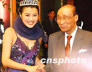 2004年度國際華裔小姐競選決賽一月十七日晚在香港舉行,香港知名人士邵逸夫出席華裔小姐競選晚會。 作者:錢興強