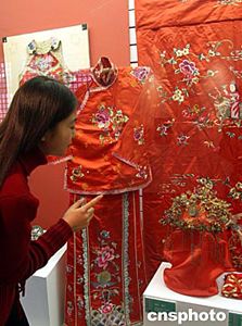 著名的東岳廟一月二十一日至二十八日將舉辦第三屆北京民俗文化節(jié)暨第六屆東岳廟會(huì),正在布置中的古典婚慶服裝營(yíng)造了熱烈的節(jié)日氣氛。中新社記者:張勤
