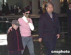 中新社?谝辉率湃针(記者王辛莉)涉嫌在瓊從事間諜活動的臺灣人宋孝濂的妻子曾靖媛和兒子宋睿庭,今天下午搭乘澳門至海口飛機,于傍晚六點零五分抵達?诿捞m機場,希望能探視正在此間拘押的嫌犯。晚六點五十分,宋孝濂妻兒緩緩步出機場,其妻曾靖媛戴著墨鏡,九歲的兒子宋睿庭戴著大口罩和帽子。臺灣媒體TVBS記者隨機抵達海口。
