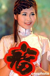 中國傳統農歷新年將至,中國各地呈現出一派過年氣氛,在一臺時裝展示會上模特手捧新春福字喜氣洋洋向人們祝福。作者:錢興強