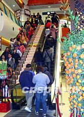 農歷新年期間,香港除了拜年之外,逛商場消費也是娛樂之一。香港各大商場為不失商機都實行“全年無休”,并推出各種折扣優惠吸引消費者。圖為青衣城商場擠滿了熙熙攘攘的人流。作者:譚達明