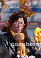 春節期間,北京各大廟會熱鬧非凡,一名賣猴玩具的小販正忙碌著在廟會上淘金。“拜神、購物、娛樂”是人們逛廟會的主要活動,廟會上旺盛的人氣帶動了獨特的廟會經濟。中新社記者:張煒