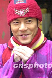 香港歌星郭富城元月二十七日出席香港時代廣場舉行的“甲申猴年金猴鬧獅賀新春”活動,圖為郭富城向眾人恭賀新禧。 作者:錢興強