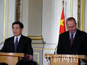 今天是中法建交四十周年紀念日,正在法國進行國事訪問的中國國家主席胡錦濤和希拉克在巴黎進行了正式會談,會談后雙方簽署了“中法聯(lián)合聲明”。該聲明強調(diào),中法兩國將深化全面戰(zhàn)略伙伴關系,致力于建立更加安全、更加尊重多樣性和更加團結的世界。