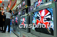 2月3日,幾名消費者在北京一家電連鎖店內選購國產電視。據有關部門統計,盡管美國商務部對中國彩電是否構成傾銷4月才最終裁決,但中國彩電對美的整體出口已出現連月下滑的趨勢。TCL彩電新聞發言人劉步塵認為,一旦今年4月中國彩電被判傾銷,那些在海外沒有設廠或不能“曲線”進入美國的中國彩電企業,將面臨丟失美國市場的風險。中新社記者:武仲林