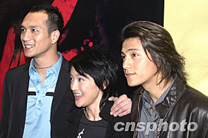2月5日下午,電影《戀愛中的寶貝》在北京舉行首映新聞發(fā)布會(huì)。這部影片融合了中國(guó)電影第五代最前衛(wèi)的藝術(shù)思考與風(fēng)格創(chuàng)新。正式放映之前就獲得包括威尼斯電影節(jié)、柏林電影節(jié)、墨爾本電影節(jié)、意大利遠(yuǎn)東電影節(jié)、香港電影節(jié)等各大電影節(jié)的邀請(qǐng)。被稱為中國(guó)內(nèi)地2004年最值得期待的第一部國(guó)產(chǎn)大片。圖為影片的三名主要演員:黃覺、周迅、陳坤(從左到右)。作者:高遠(yuǎn)