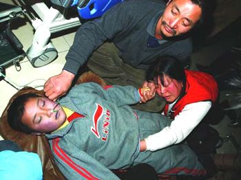 昨晚23時10分,一名已在密云縣醫院里昏迷了3個多小時的男孩開始接受急救。他的父母早已經心急如焚。 新京報圖片