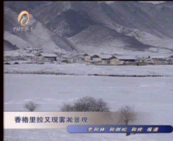 報道說,由于香格里拉早晚空氣的溫度差異較大,而形成了這種特有的霧淞現象。而香格里拉海拔較高,空氣流動速度快,即使有太陽的時候,溫度仍然可以保持在一個特定范圍之內,因而對霧淞的較長時間存在創造了必要的溫度條件。