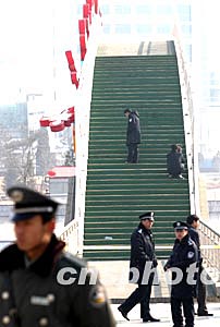 二月九日,北京有關專家在元宵燈展發(fā)生特大傷亡事故的密云縣密虹公園彩虹橋上進一步展開調查。中新社記者:盛佳鵬