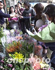 澳門今年情人節鮮花店生意十興旺,許多情侶們紛紛在情人節當天來到鮮花店購買情人節鮮花,大部分花店生意都比去年上升不少。作者:李剛