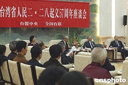 臺盟中央常務(wù)副主席林文漪,副主席劉亦銘、吳國禎、李敏寬,全國政協(xié)港澳臺僑委員會副主任李贛騮,全國政協(xié)人口資源環(huán)境保護委員會副主任張洽,以及部分“二二八事件”的參加者,在京臺胞、臺商、臺生近兩百人出席座談會。
