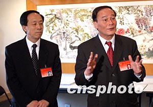 圖:王岐山與北京市人大代表討論拆遷問題 (2004-02-16 20:55:16)