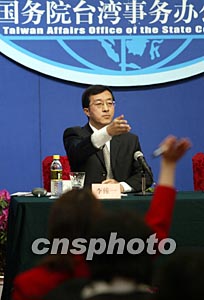 中國國務院臺灣事務辦公室發言人李維一25日在北京釣魚臺大酒店舉行的例行記者會上表示,不管臺灣當局以什么樣的借口發動針對大陸的“3·20公投”,都掩蓋不了其“臺獨”分裂的本質。中新社記者:毛建軍