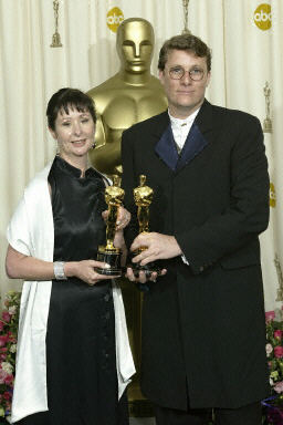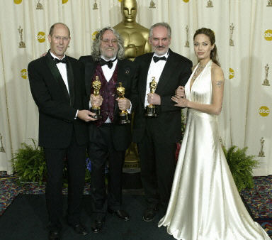 《指環(huán)王3:王者回歸》獲最佳美術指導獎,安吉麗娜·朱莉為三位美術指導頒獎。