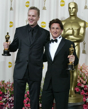 最佳男主角肖恩·潘(右)和最佳男配角蒂姆·羅賓思