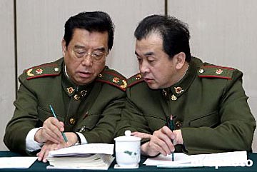 三月四日上午,全國政協委員李雙江(左)、黃宏參加政協文化藝術界小組討論一絲不茍。中新社記者:張勤