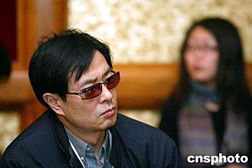 演員濮存昕四日在北京駐地出席政協小組討論時,深色墨鏡使他形象酷勁十足。中新社記者:滿會喬