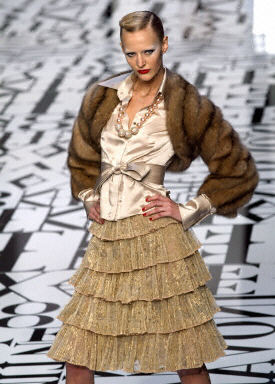 在巴黎2004/2005秋冬時裝周上,模特展示設計師新款時尚秋冬女裝。