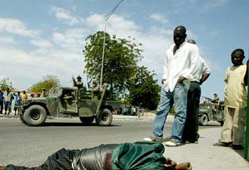 圖文:一群海地人圍觀一名被打死的海地公民尸體