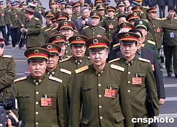 解放軍代表團十四日在北京出席十屆全國人大二次會議閉幕式。中新社記者:史利