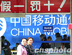 3·15國際消費者權益保護日之際,北京王府井大街上一家手機銷售商打出“假一罰十”的標語吸引消費者放心購買。作者:張雷