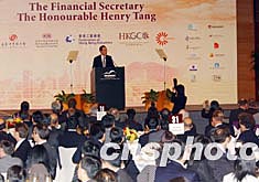 香港特別行政區(qū)財政司司長唐英年,三月十五日在香港總商會舉行的午餐會上,回答商界人士提出的有關(guān)2004/2005年財政預(yù)算案問題。 作者:錢興強