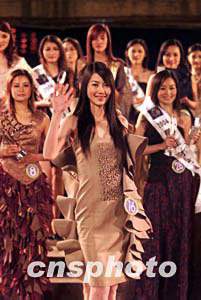 三月十五日晚,“古鎮(zhèn)西塘”2004年國際旅游小姐大賽中國區(qū)總決賽在浙江西塘落幕,來自長春的九號選手鈔俊男獲得大賽中國區(qū)總決賽冠軍。中新社記者:盛佳鵬