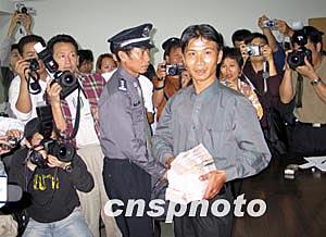 二十九歲的三亞市民陳賢壯因舉報有功,今天獲得公安部頒發獎金二十萬元,及三亞市委、市政府獎金五萬元。他在新聞發布會上表示能夠為打擊犯罪份子立功,感到很光榮。