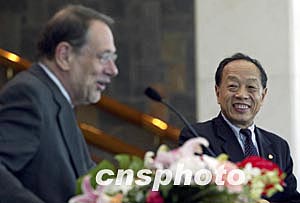 李肇星積極評價了中歐在雙邊貿(mào)易和國際事務(wù)領(lǐng)域的合作。他說,中歐經(jīng)貿(mào)合作發(fā)展迅速。在國際事務(wù)中,雙方均主張建設(shè)多邊主義,在聯(lián)合國等國際組織中進(jìn)行經(jīng)常性的磋商協(xié)調(diào)。中國愿意看到歐盟在維護(hù)世界和平、發(fā)展和共同繁榮方面發(fā)揮更大的作用。
