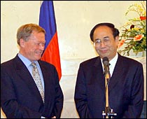 趙啟正表示,能接受俄羅斯總統的“圣彼得堡300周年紀念章”他感到十分榮幸,在表達對普京總統感謝的同時,他也對普京順利連任表示了衷心的祝賀。他說,俄羅斯是文明古國,科技大國,他將鼓勵中國媒體更多地報道俄羅斯,向人們講述她的歷史、她的文化、以及她光輝的明天。(李滔)