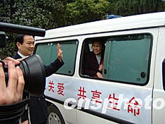 三月十八日,十支總數為三十人的湖北防治艾滋病專家隊,分赴該省二十一個地區開展為期一年的巡回醫療。圖為湖北官員向專家道別。作者:艾啟平