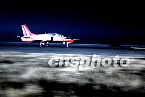 擔負中國空軍最新噴氣式教練機首訓任務的濟空某飛院,今春組織該機新學員進行夜航訓練。圖為新學員駕駛新教練機成功實現平穩著陸。作者:崔文斌