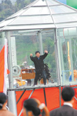 昨日上午7時,記者來到碧峰峽的接待大廳外,看見陳建民已端坐在玻璃房中的書桌前開始看書。據(jù)公眾見證人說,陳建民早晨6時就起床了。記者撥通了陳建民的電話后得知,原來他把平時的生活習慣也帶進了玻璃房。他告訴記者,平時他就習慣6時起床,所以前晚11時許他睡下時就定好了早晨6時的鬧鐘。“絕食第一晚,我睡得比平時輕松。因為平時晚上還有病人來求診,睡不安穩(wěn),昨日我一覺就睡到早上,像在休假。”
