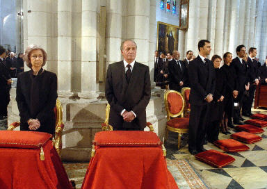 西班牙國王卡洛斯和包括法國總統(tǒng)希拉克、英國首相布萊爾、德國總理施羅德、美國國務(wù)卿鮑威爾等在內(nèi)的多國領(lǐng)導(dǎo)人出席了葬禮。