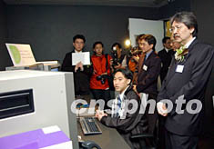 香港工商及科技局局長曾俊華等嘉賓,3月29日在香港數碼港數碼媒體中心參觀新啟用的設施。作者:洪少葵