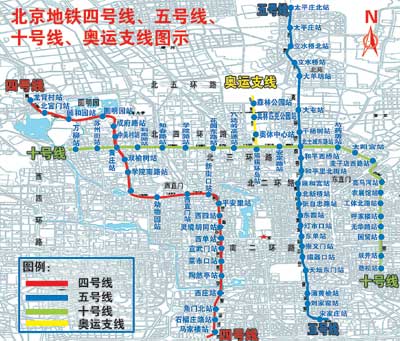 據(jù)報道,北京地鐵四號線全長28.16公里,共設24座車站,南起豐臺馬家樓,北至海淀區(qū)龍背村。北京地鐵五號線全長27.6公里,共設22座車站,南起豐臺區(qū)宋家莊,北至昌平區(qū)北太平村。北京地鐵十號線全長24.55公里,共設22座車站,南起朝陽區(qū)勁松,西至海淀區(qū)萬柳。奧運支線全長5.91公里,共設4座車站,南起熊貓環(huán)島,北至奧體森林公園。